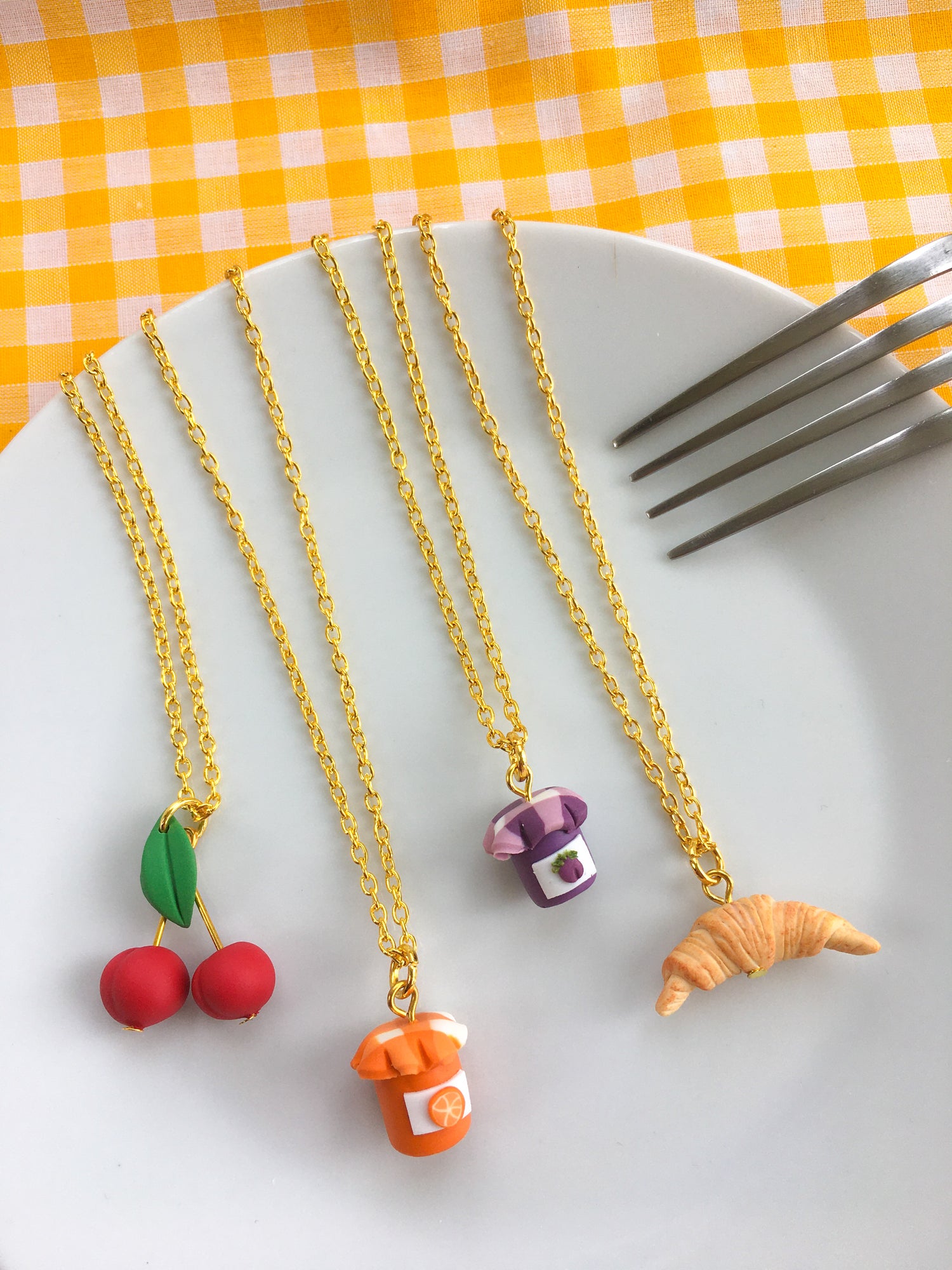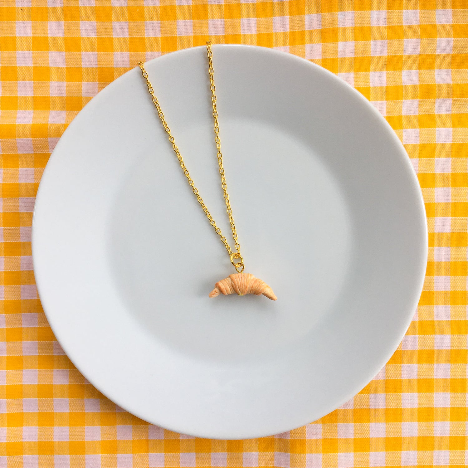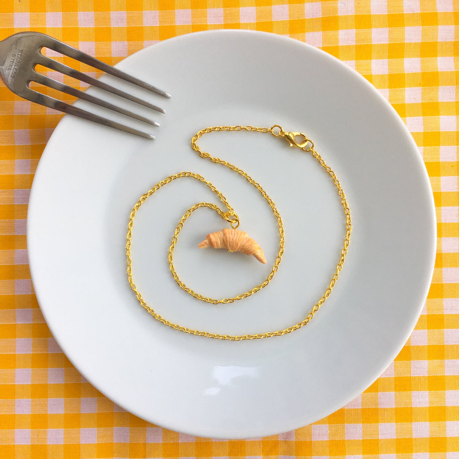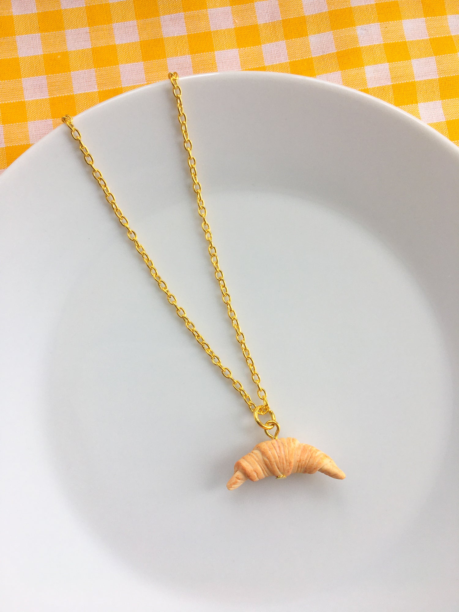 Fresh out of the patisserie is this cute croissant charm necklace! Handmade from polymer clay and complete with a gold plated cable chain.