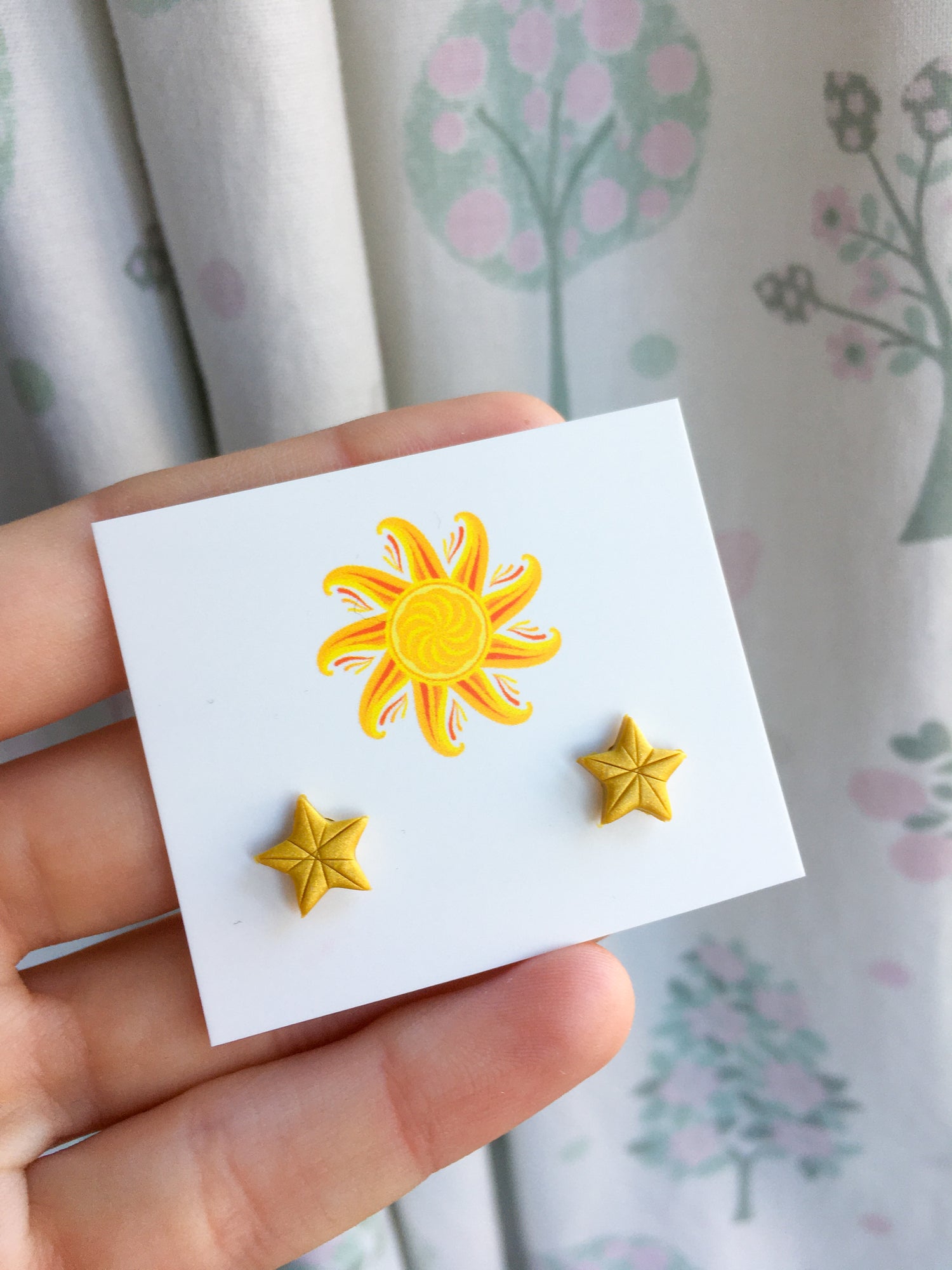 Simple but effective, shimmering golden star studs. Available in standard or micro size!