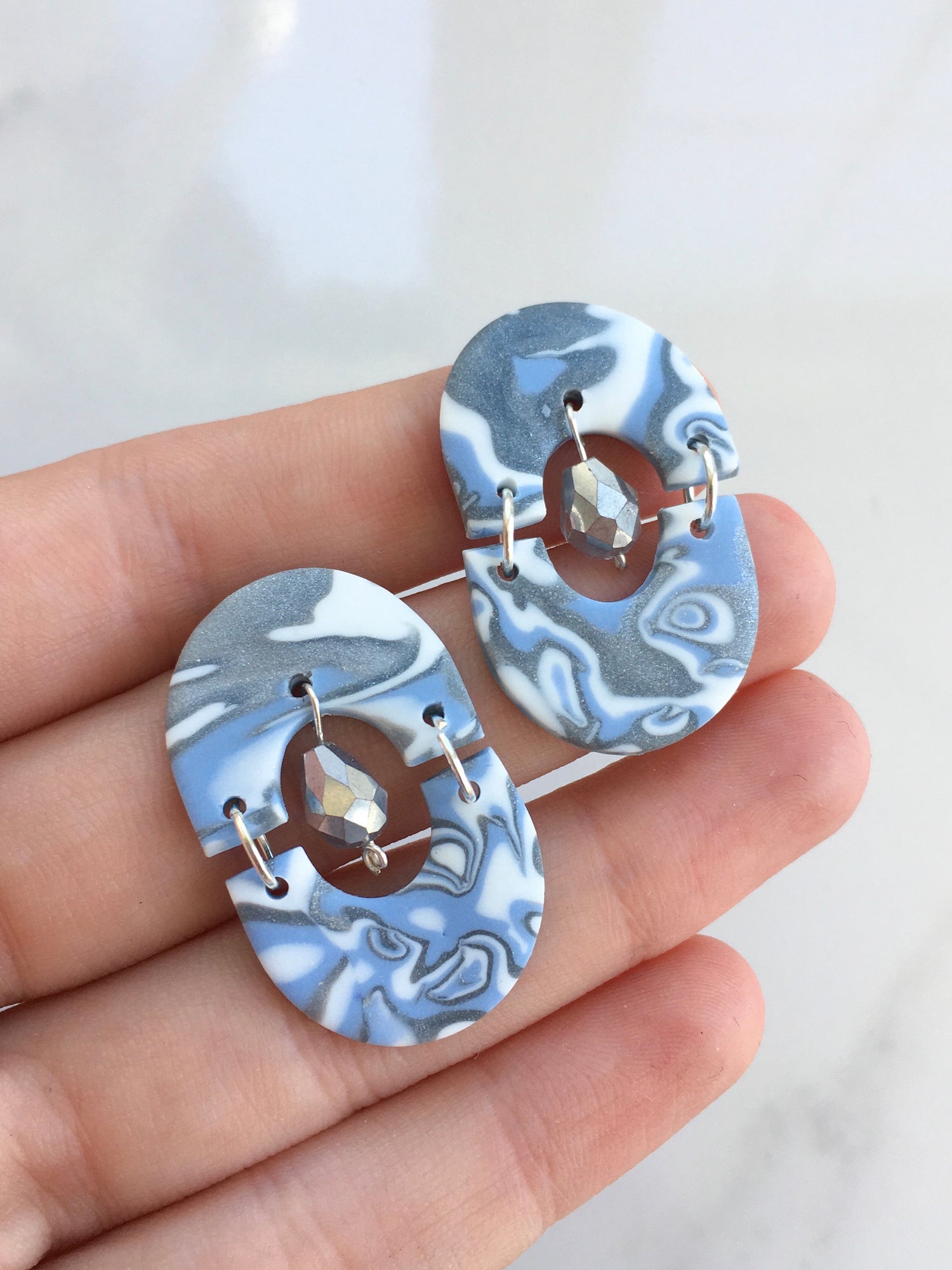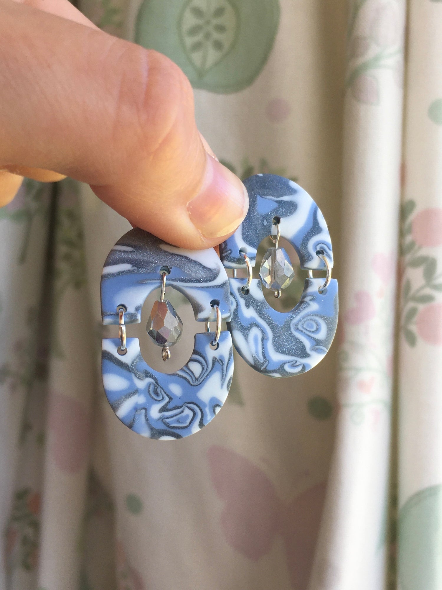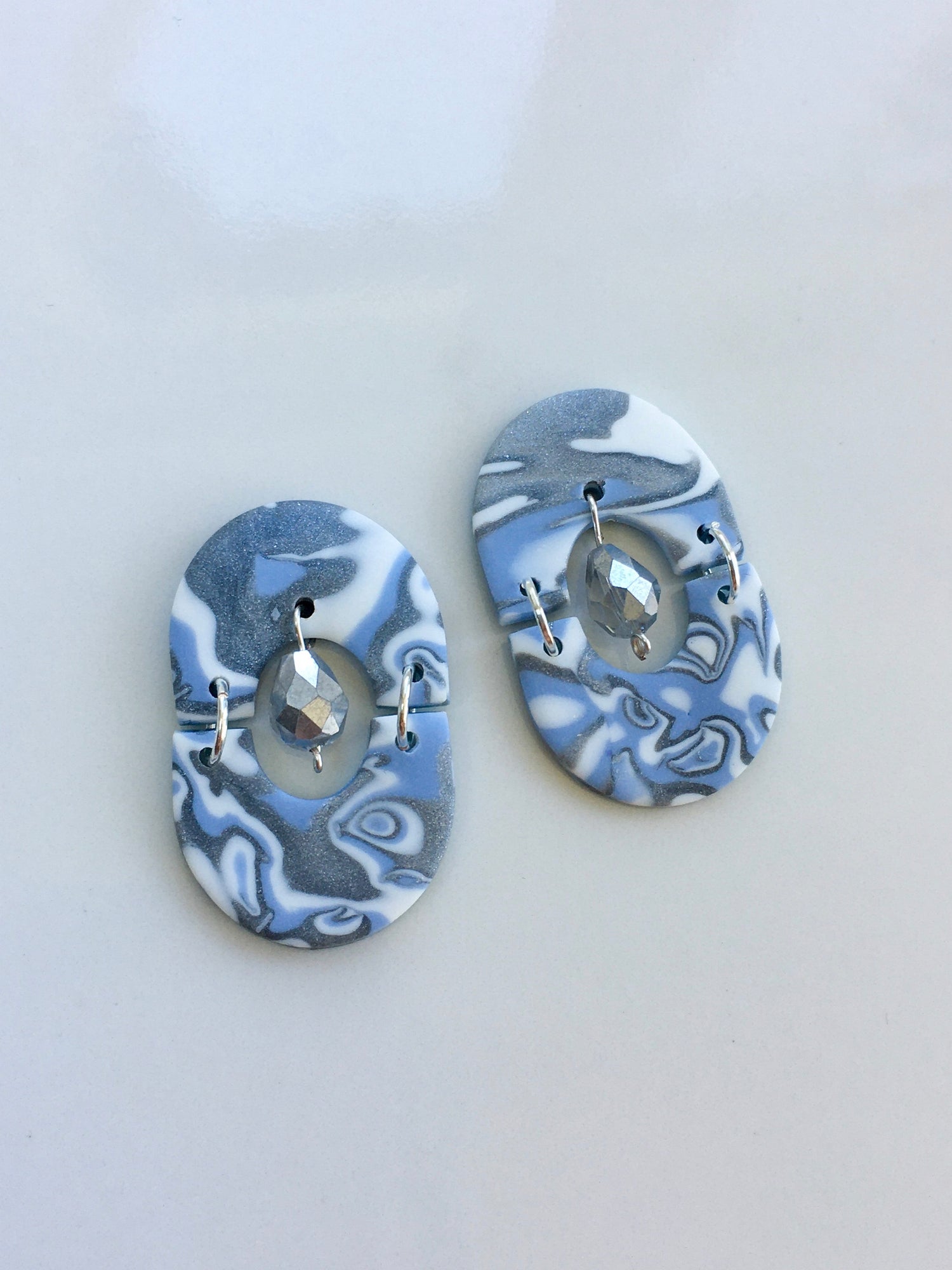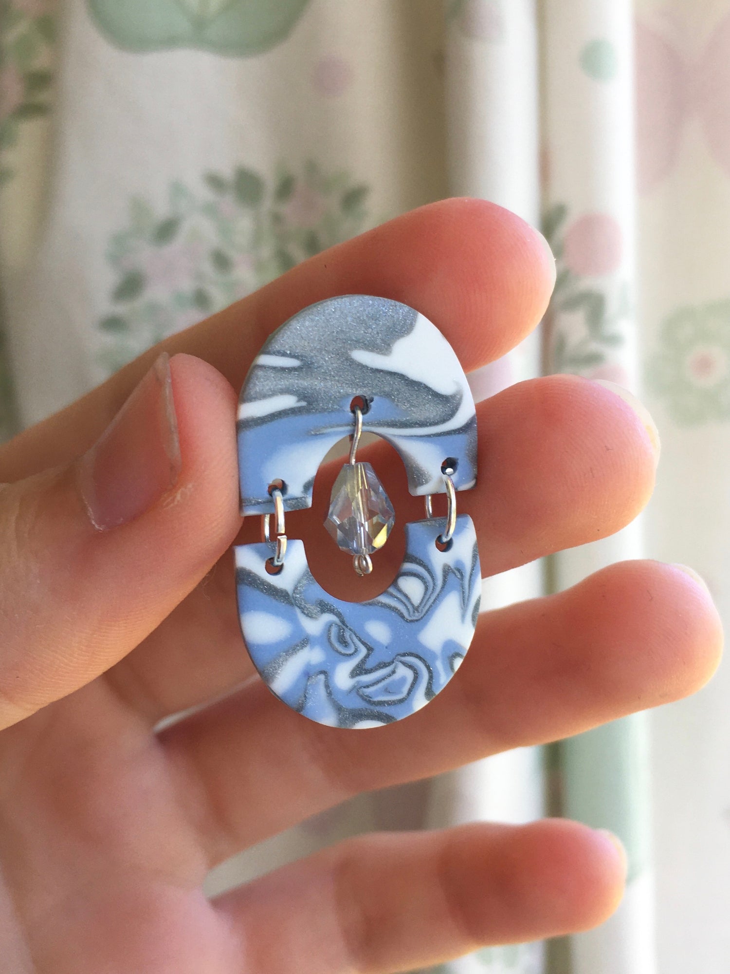 Stunning elegant arches of swirling blue, silver and white with silver crystal dropped in the centre, beautiful.