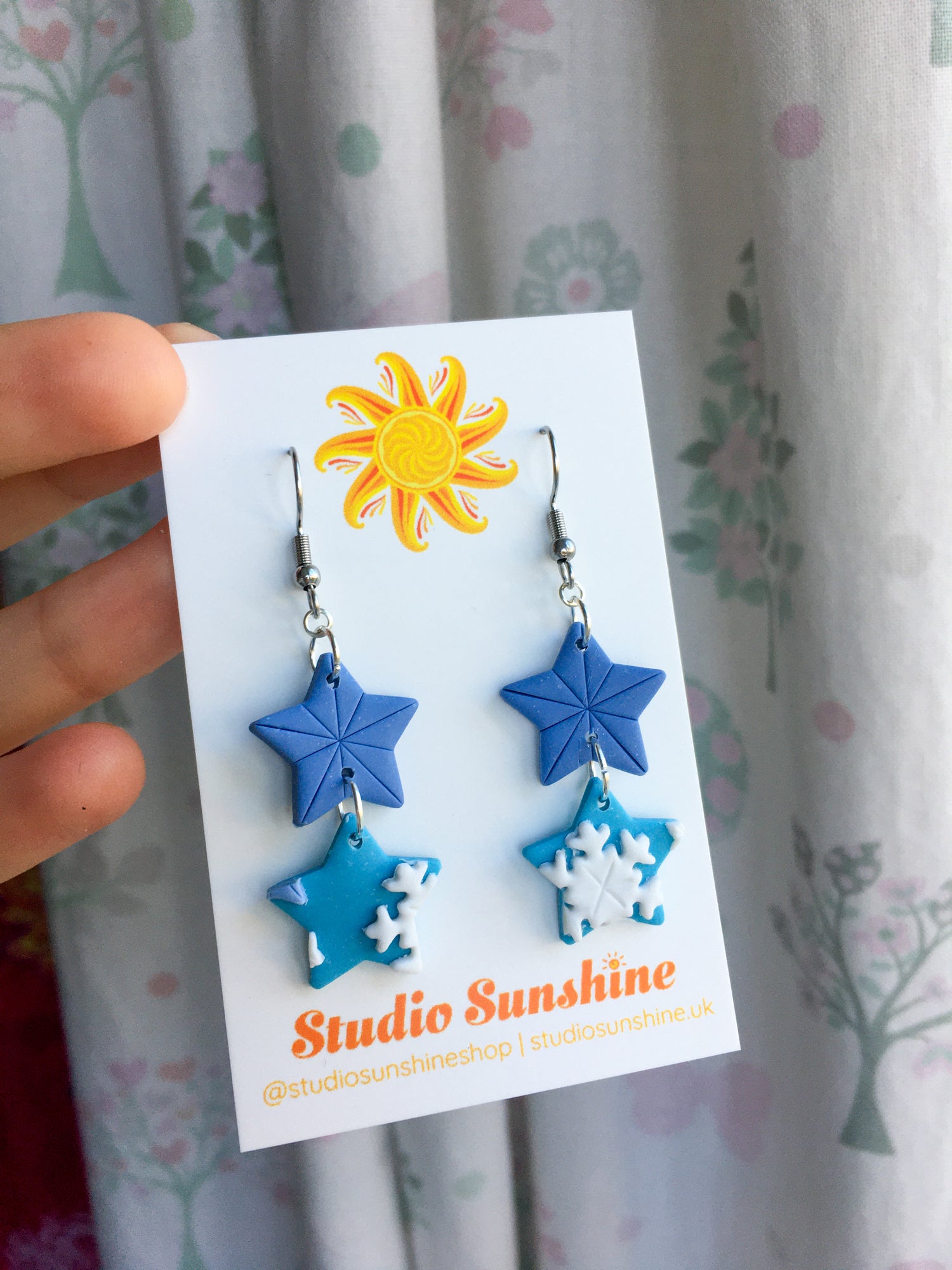 This slab captures that flurry of snow we all long for! With white snowflakes and periwinkle stars on a pale blue background. This pair consists of stacked stars.