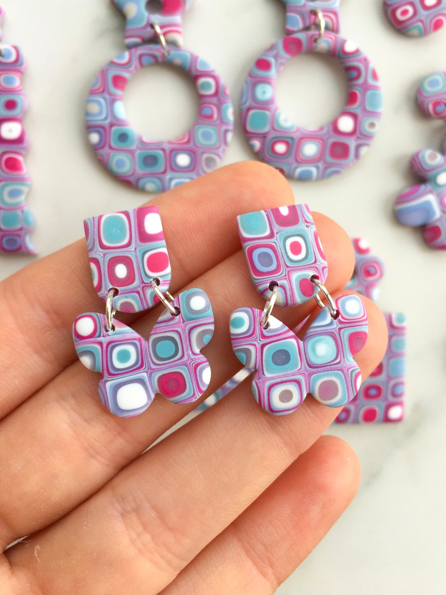 This groovy pattern features a shimmering combo of pinks, purples and blues to make a very retro inspired set, straight out of disco! Choose your pair from the variants below!