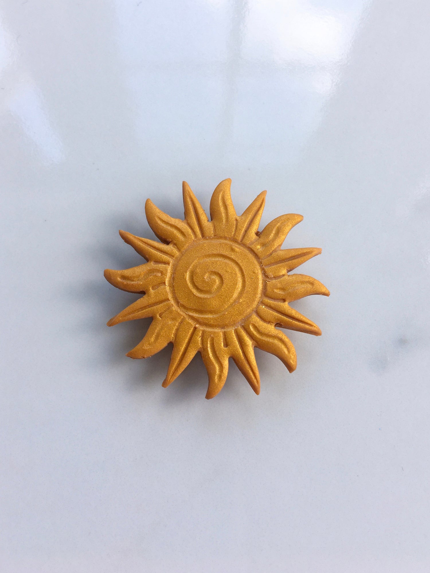 Add some mythological glamour to your decor with this golden spiral sun magnet. Choose between two designs!
