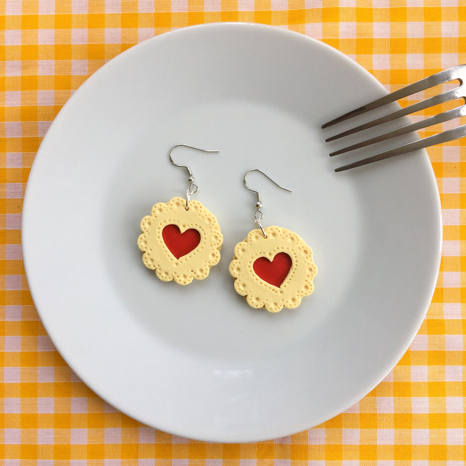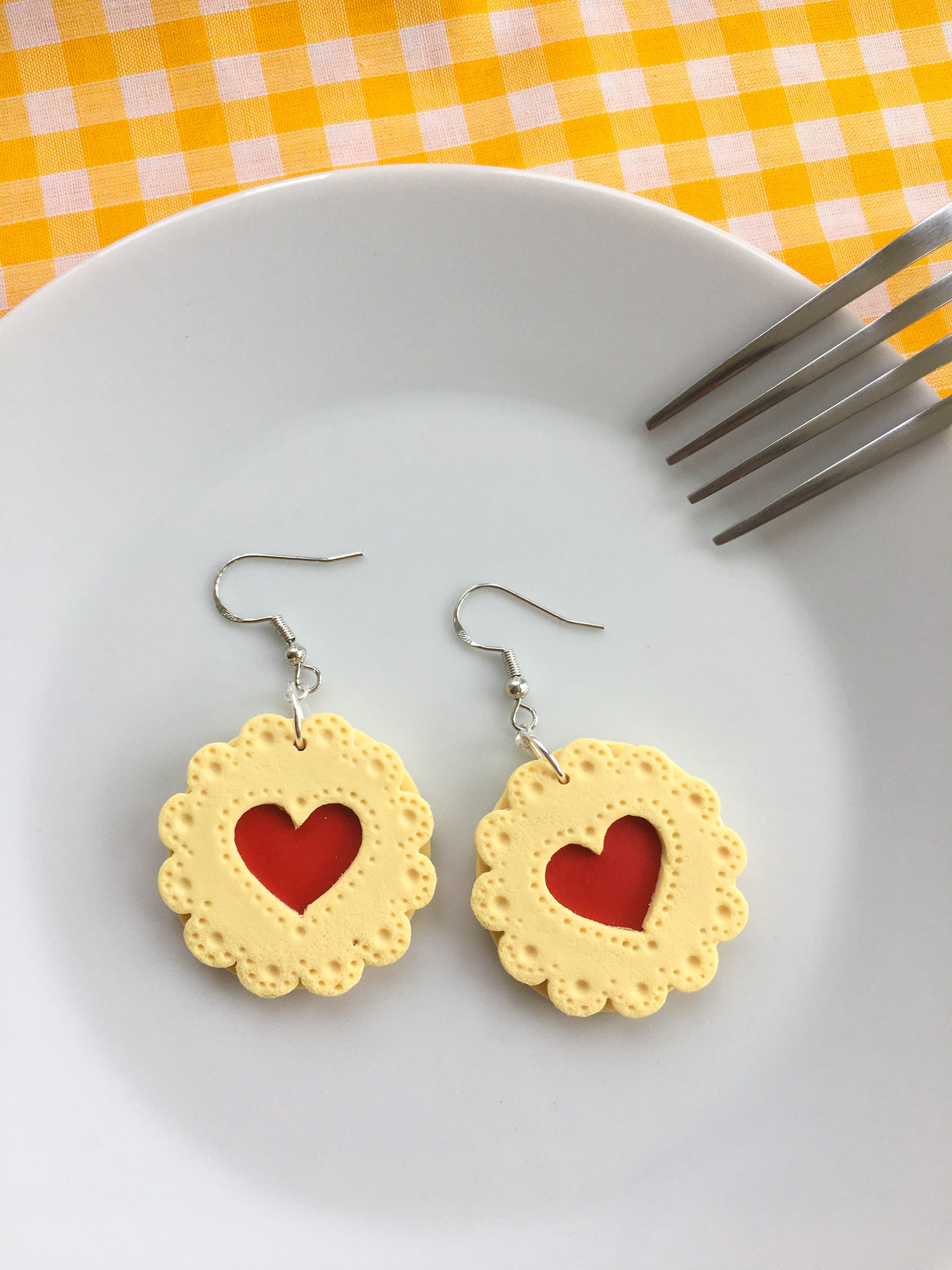 The most adorable Jammie Dodger inspired dangles! With biscuit texture & a yum layer of jam to finish, you'll want to take a bite!