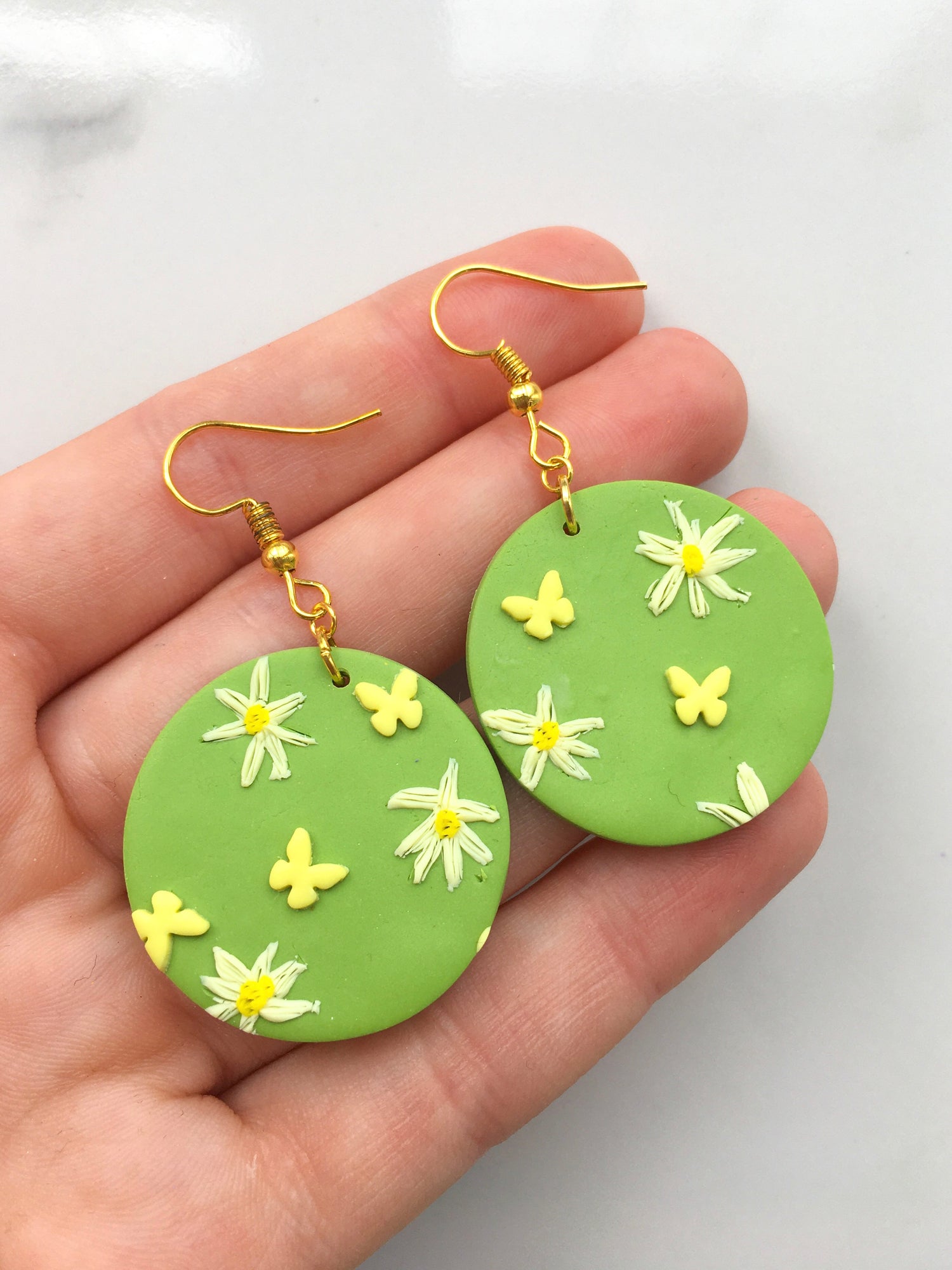 Simple but elegant, luscious green meadows of soft white flowers, and one or two butterflies! This pair features large discs.