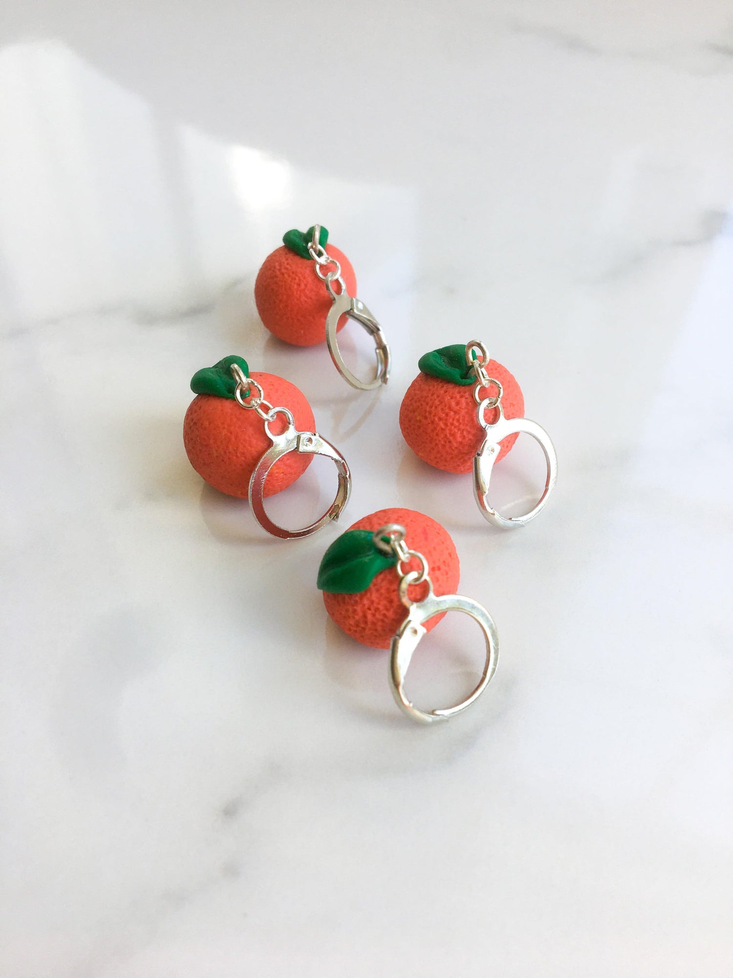 This adorable pair features a speckled orange topped with a luscious leaf and completed with silver huggie findings!