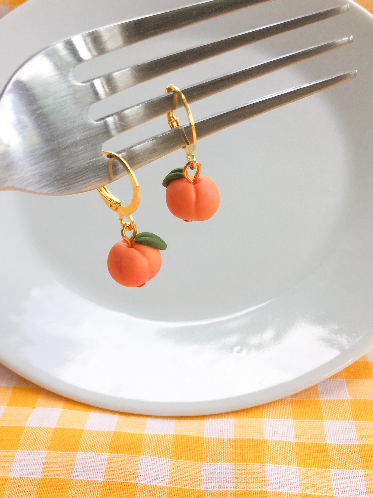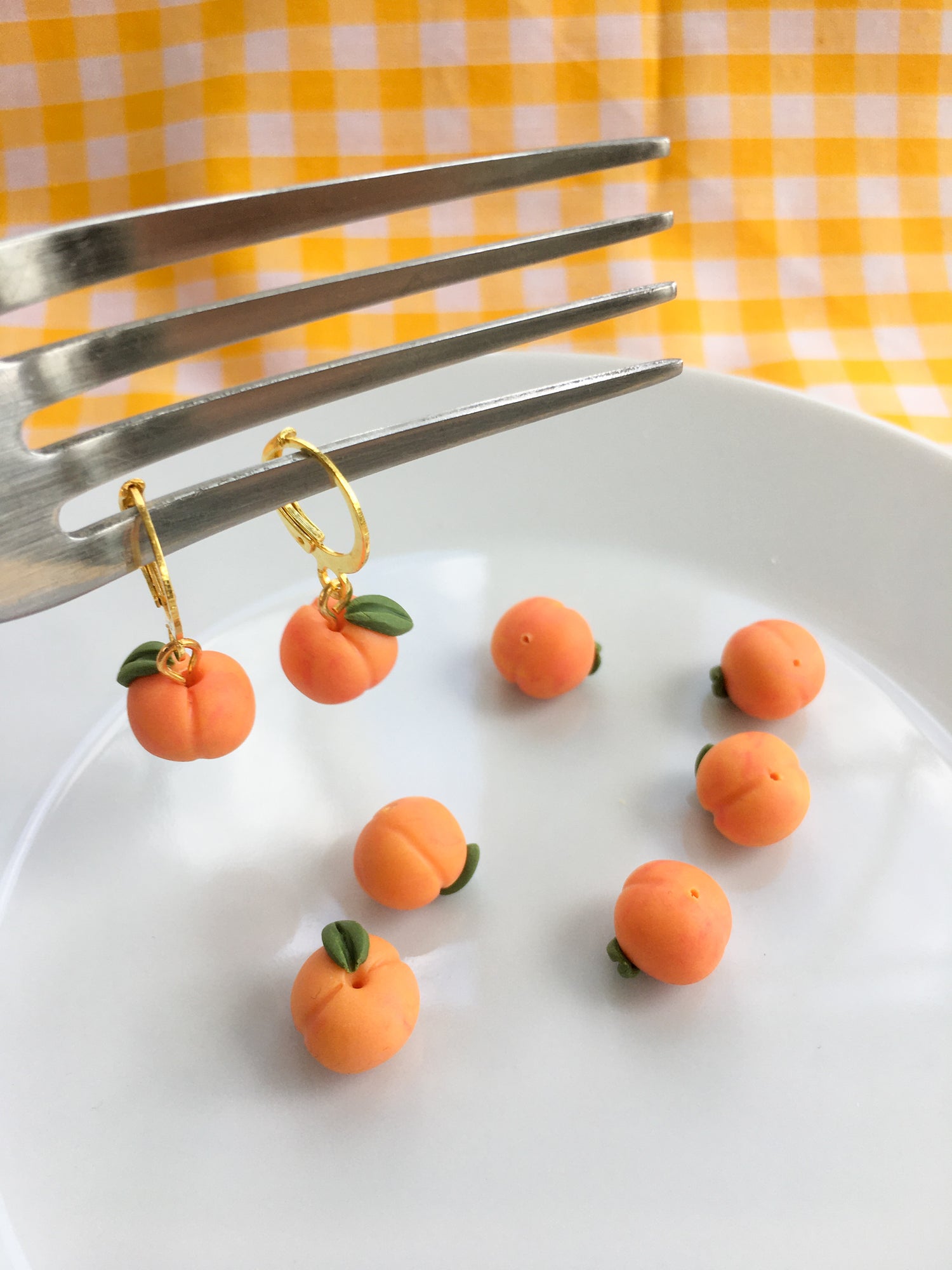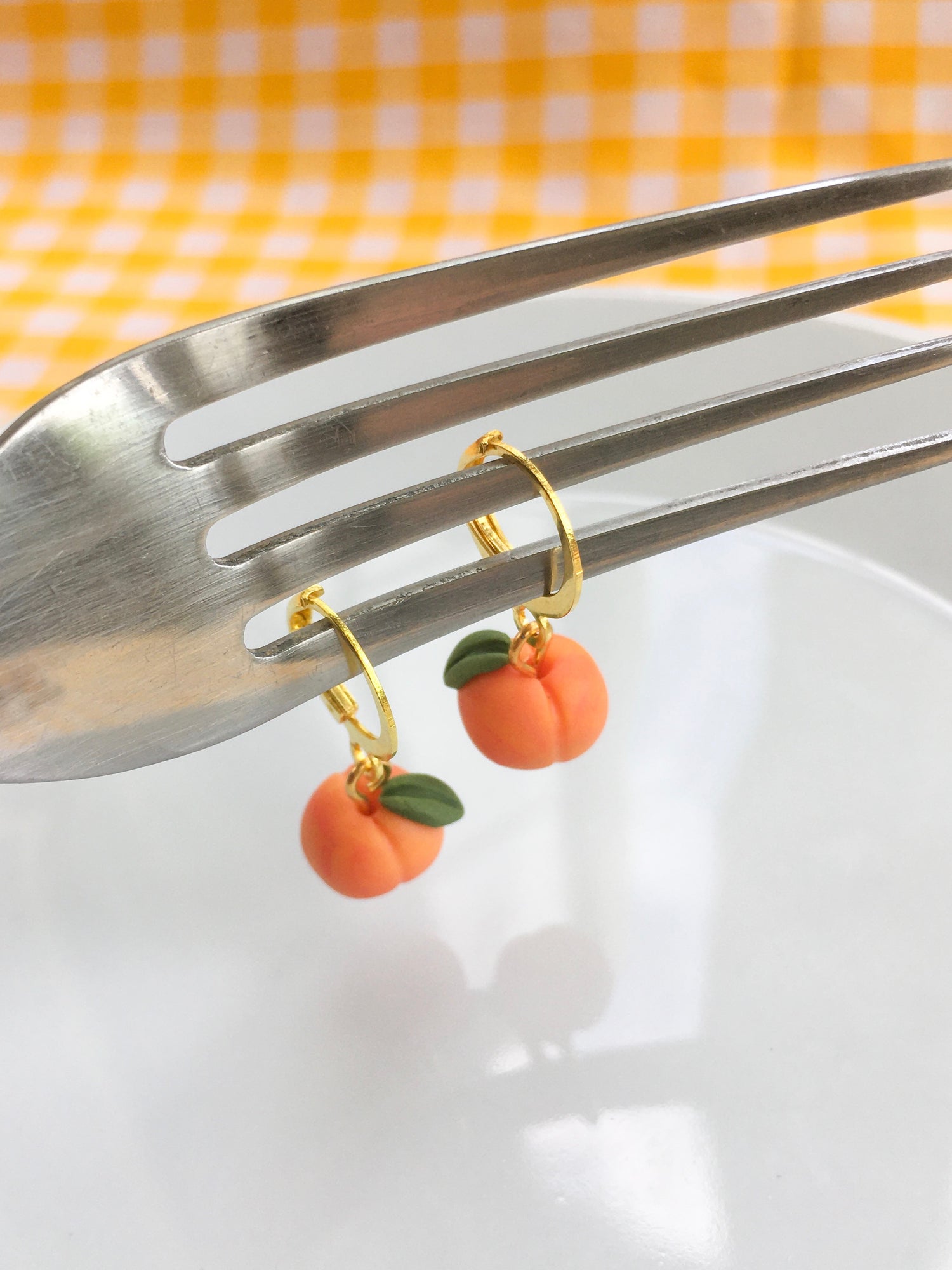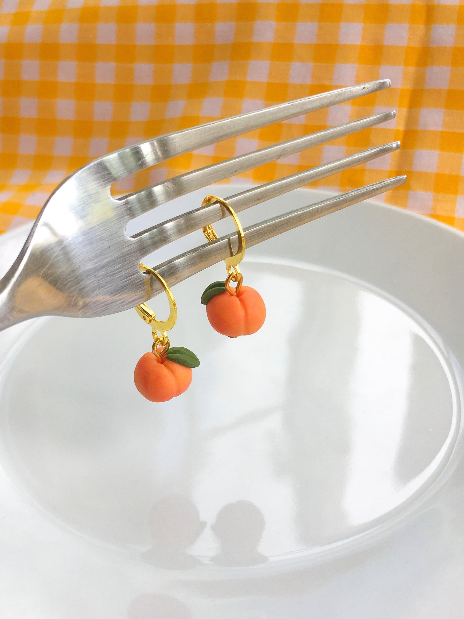 Step into summer with these adorable juicy peach earrings. With a coral marbled charm and cute leaf, you'll want to take a bite...