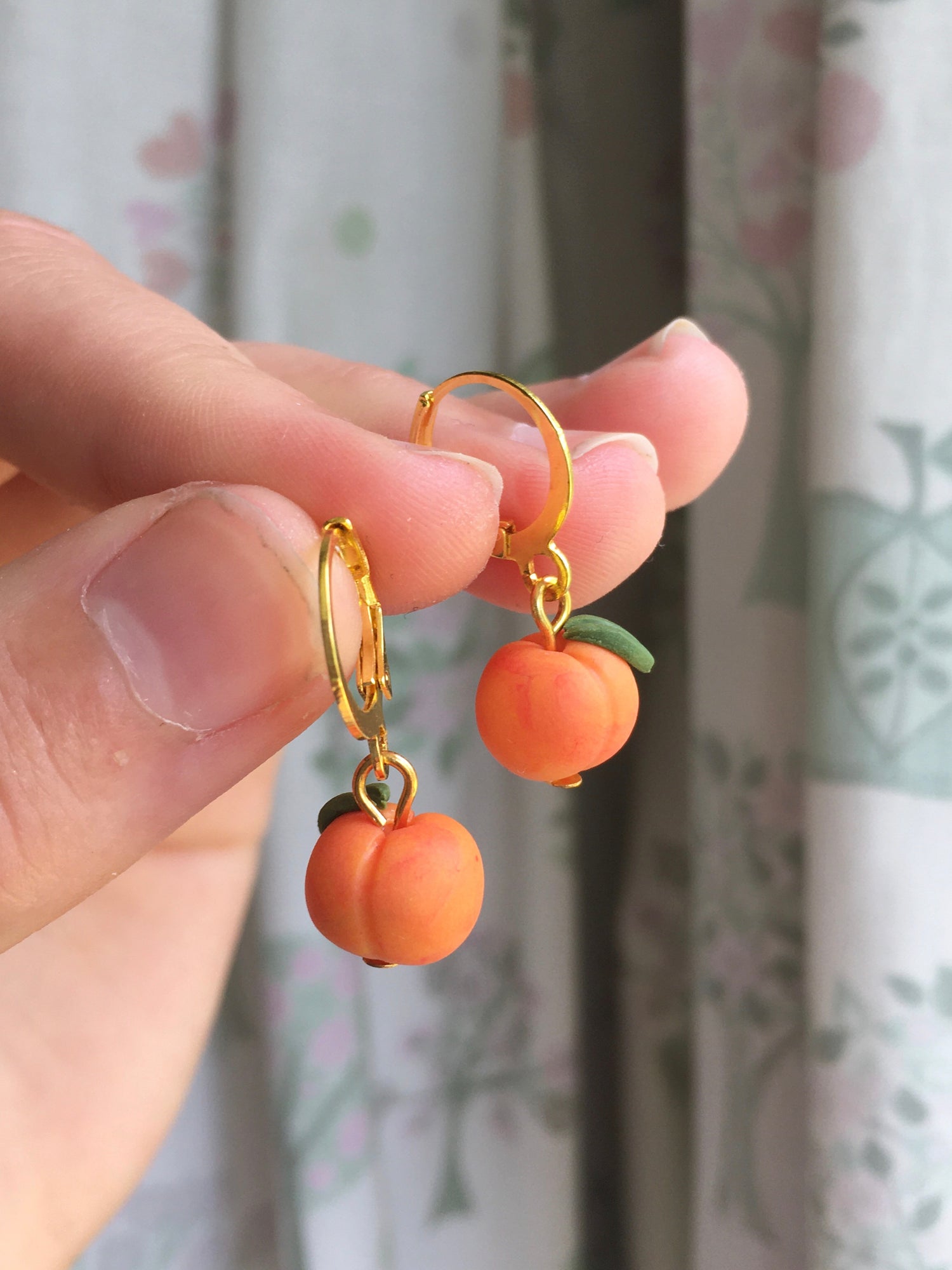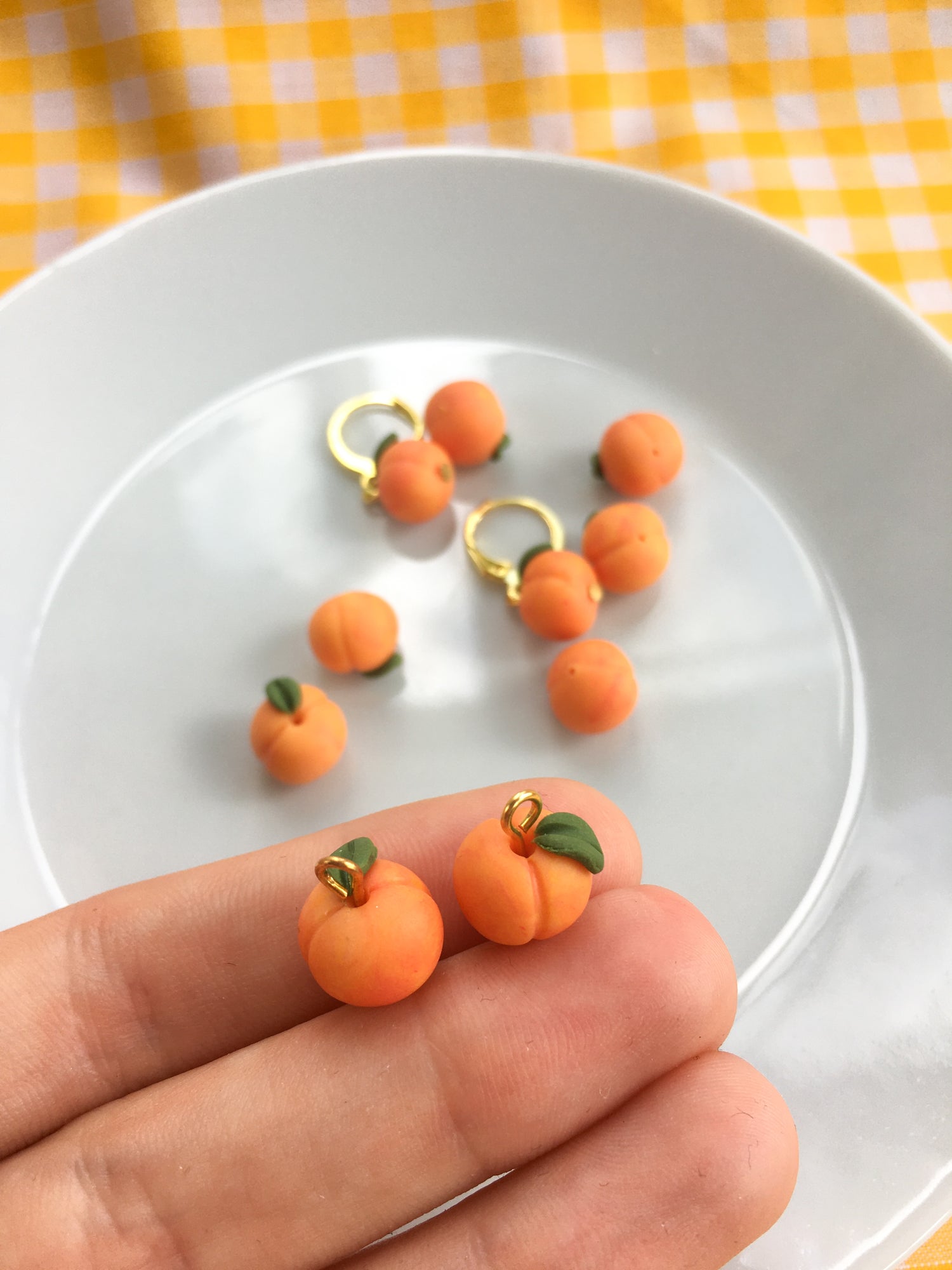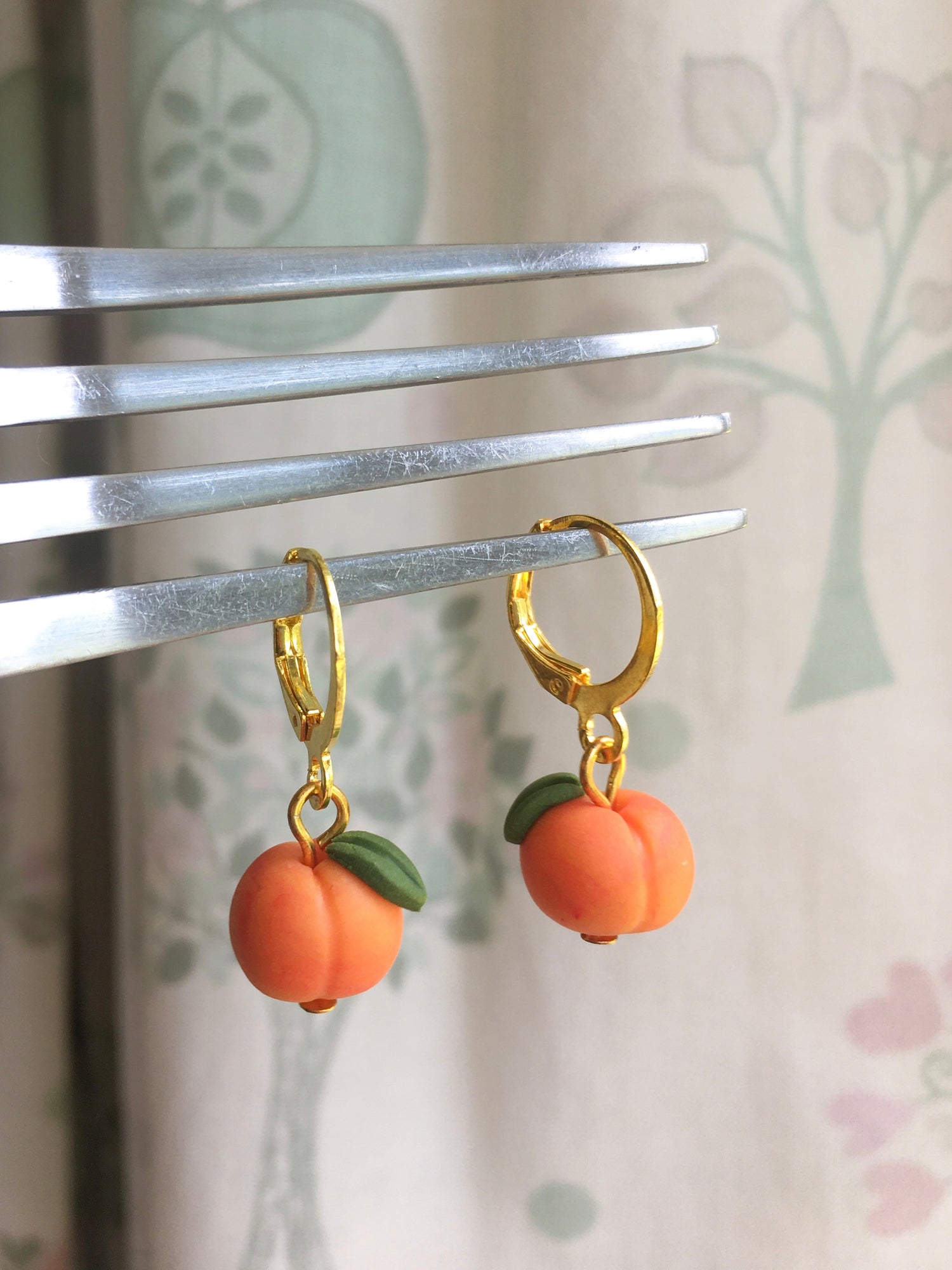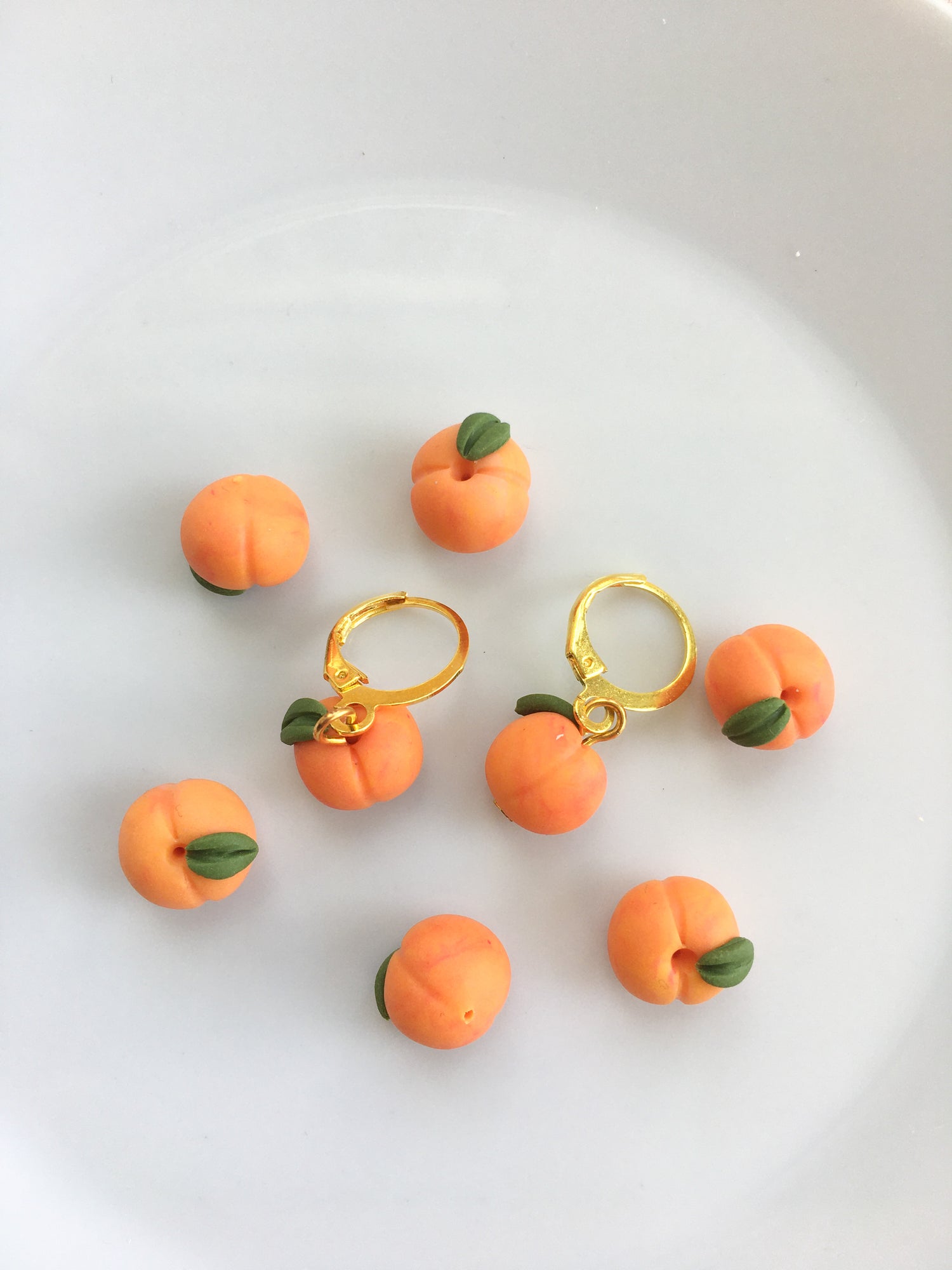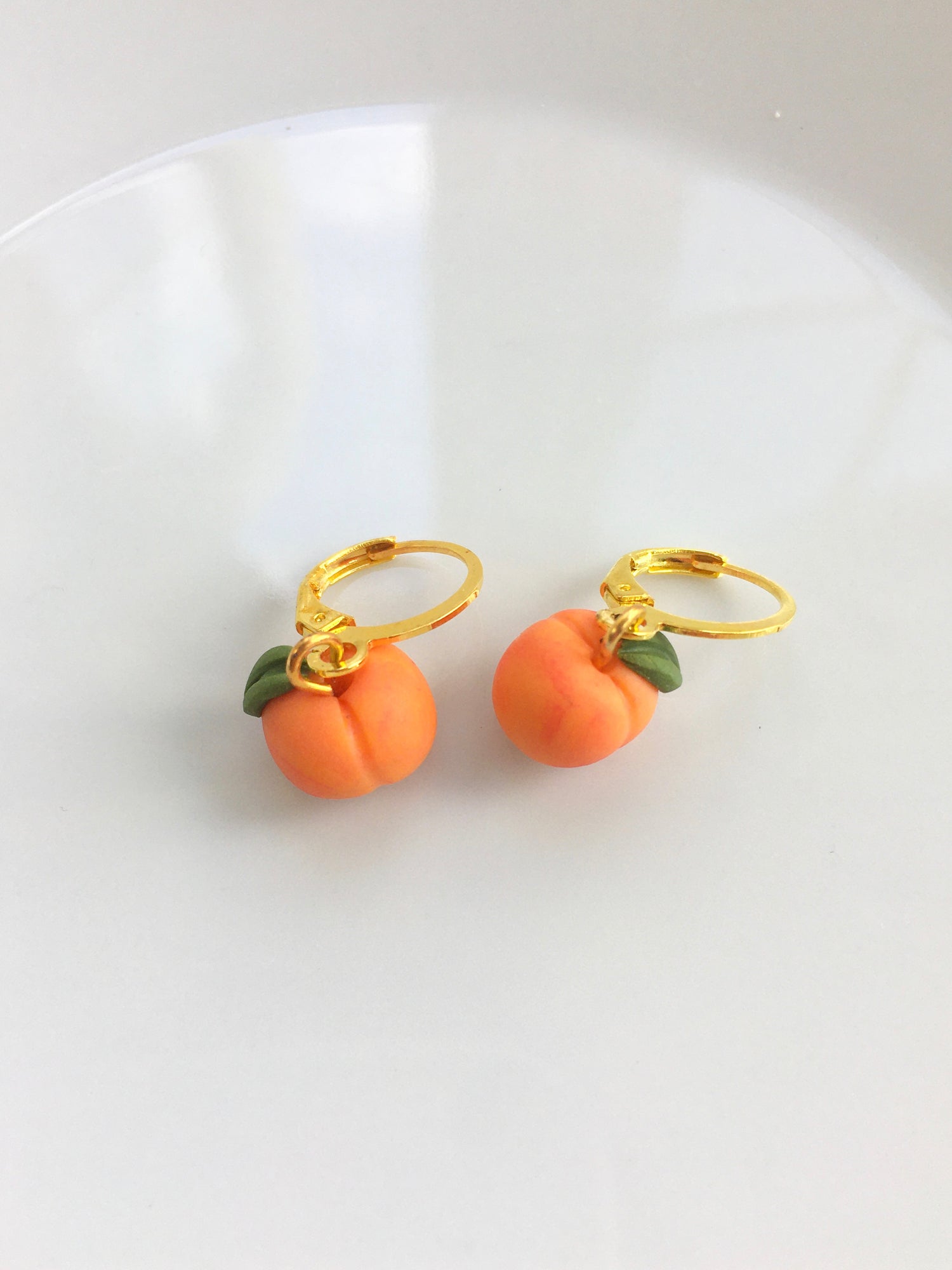 Step into summer with these adorable juicy peach earrings. With a coral marbled charm and cute leaf, you'll want to take a bite...