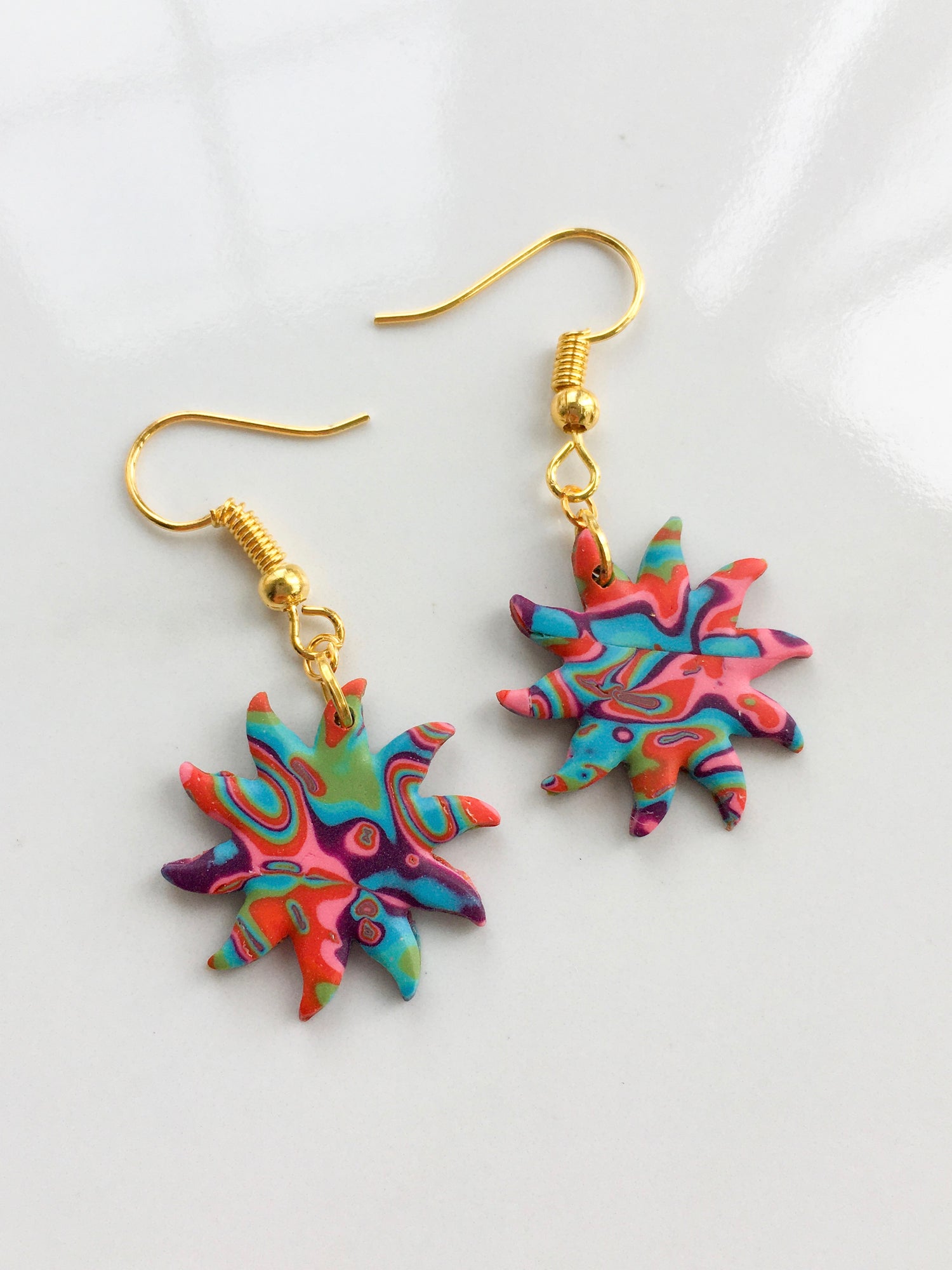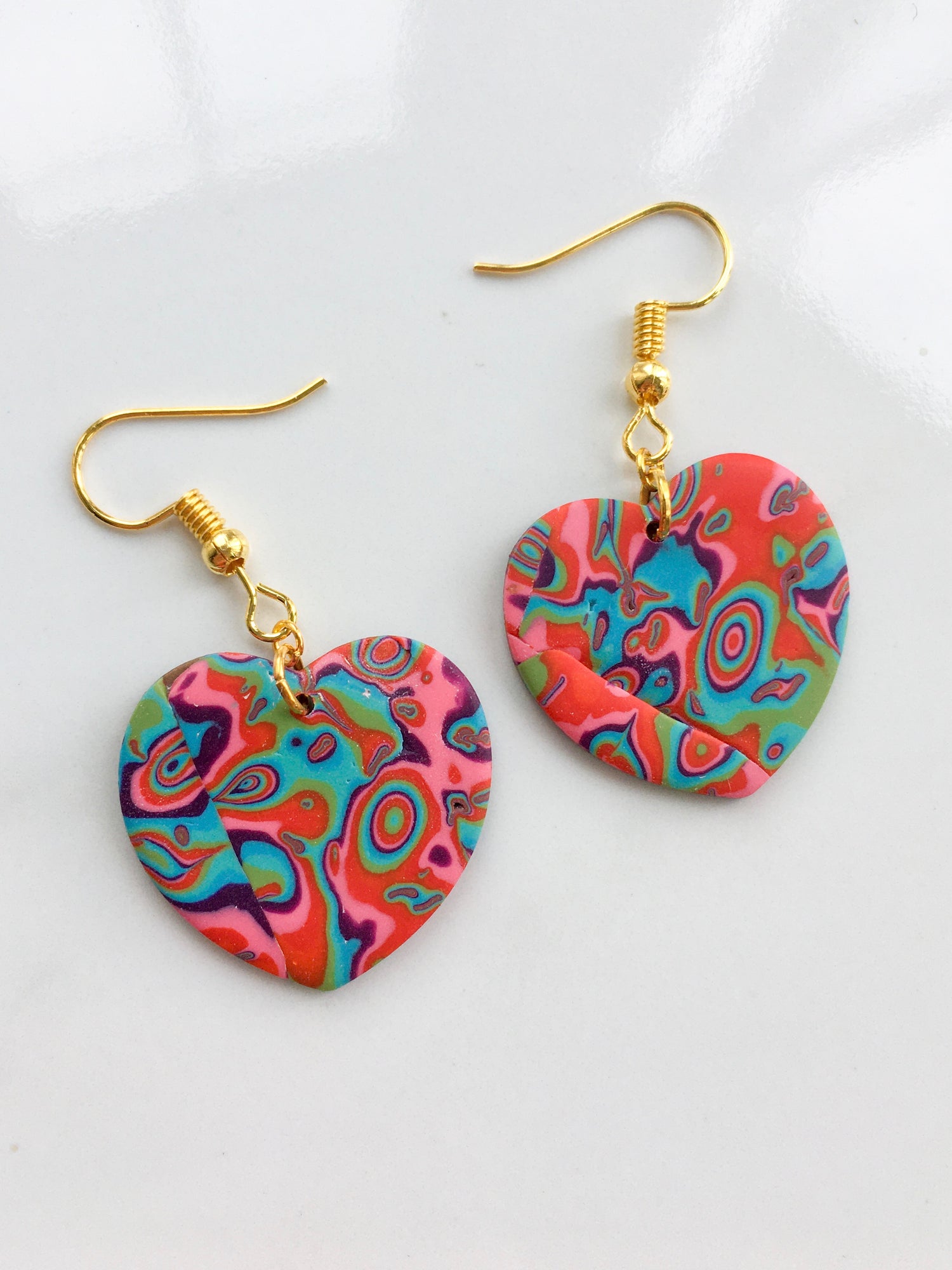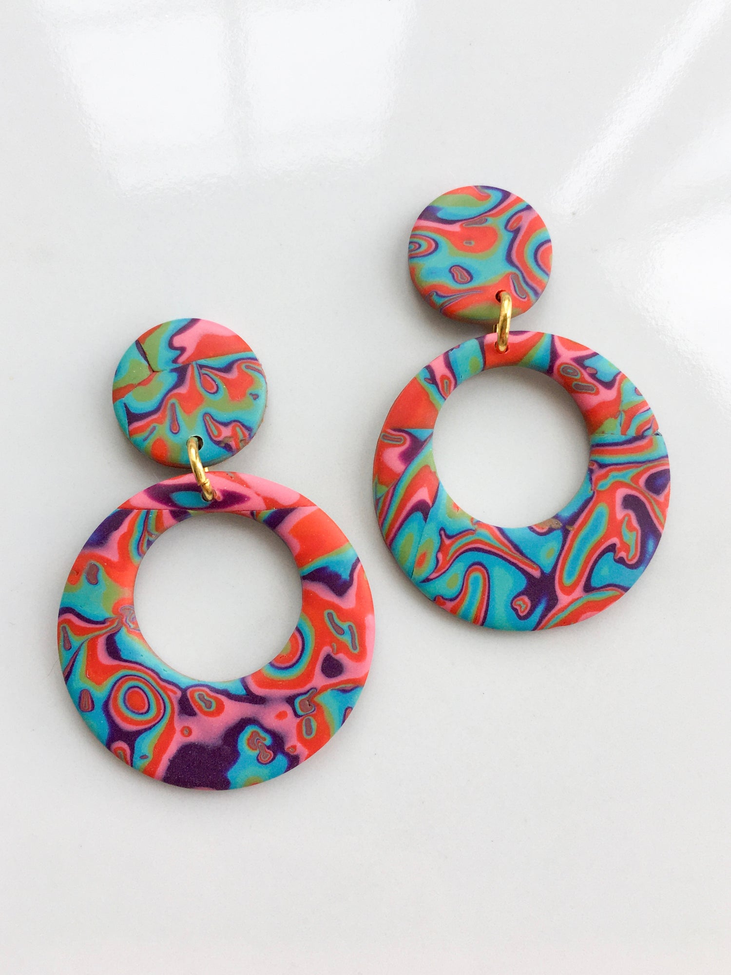 A vibrant combination of reds, blues, purples and greens make up this striking mokume gane design, a new psychedelic favourite hitting the block! Choose your pair from the list below!