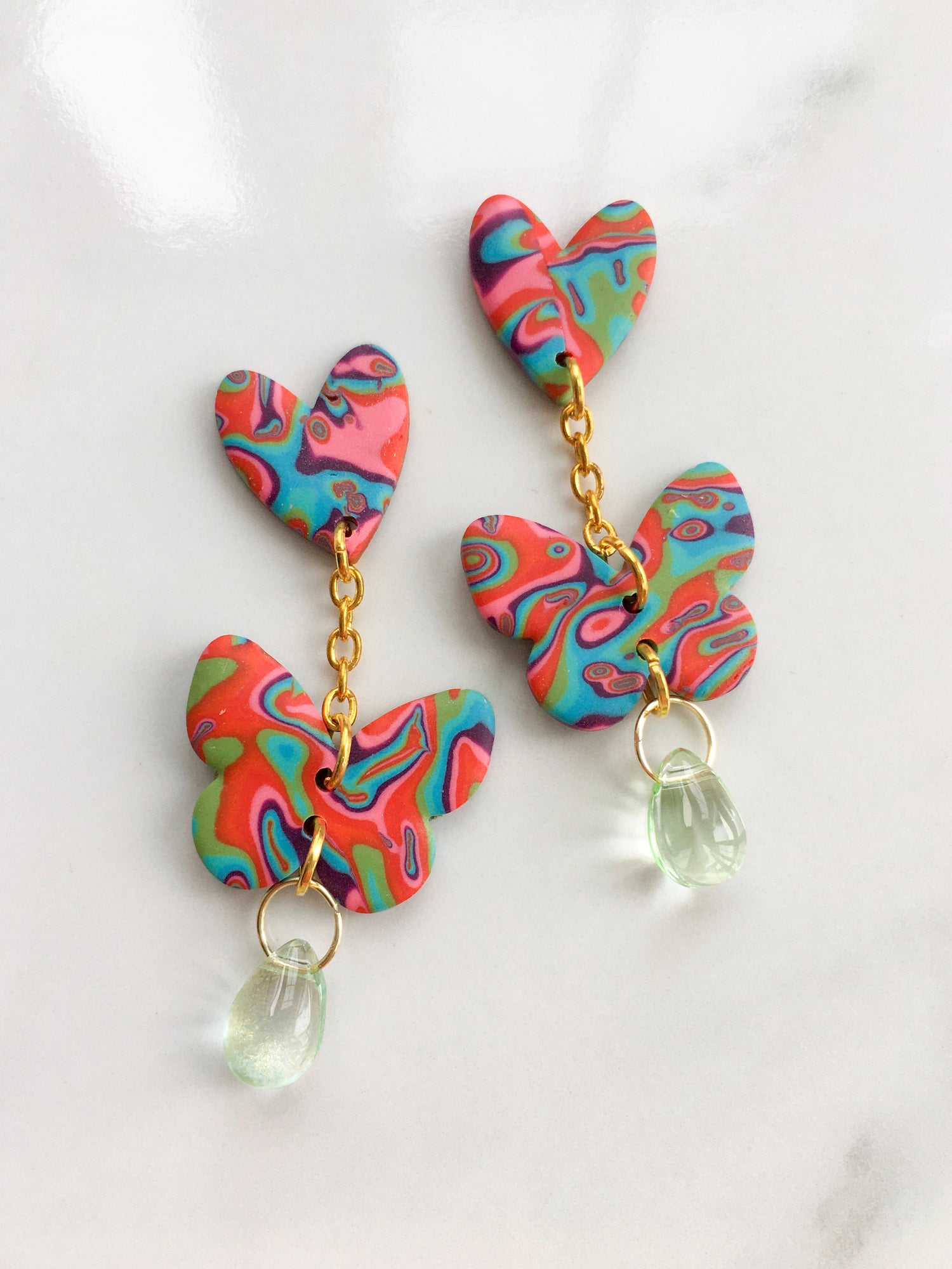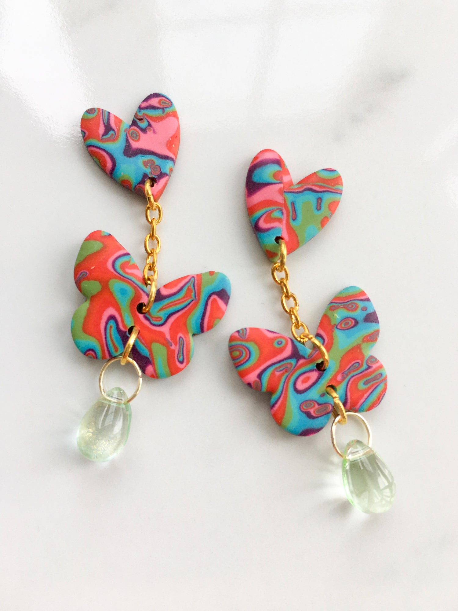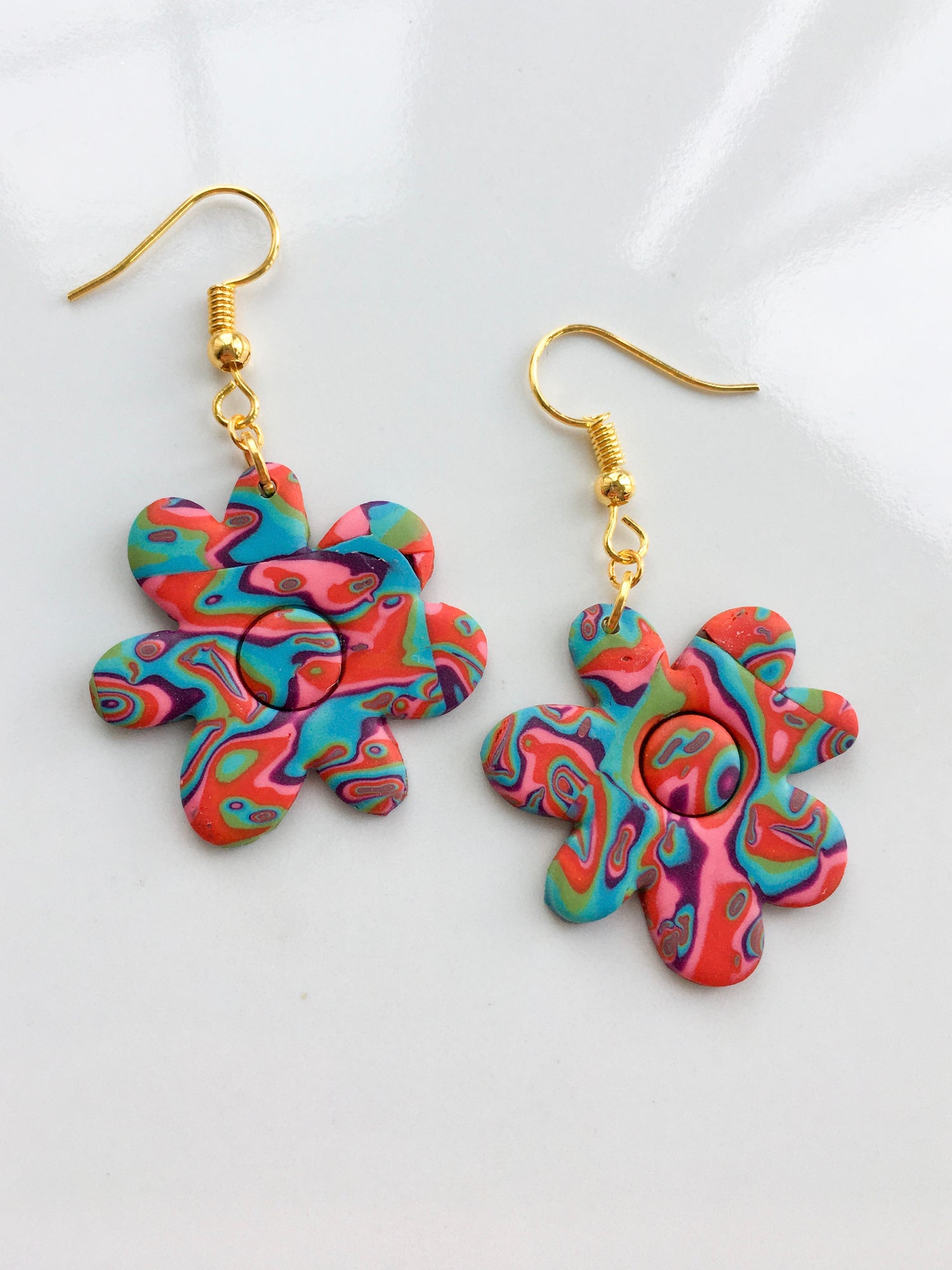 A vibrant combination of reds, blues, purples and greens make up this striking mokume gane design, a new psychedelic favourite hitting the block! Choose your pair from the list below!