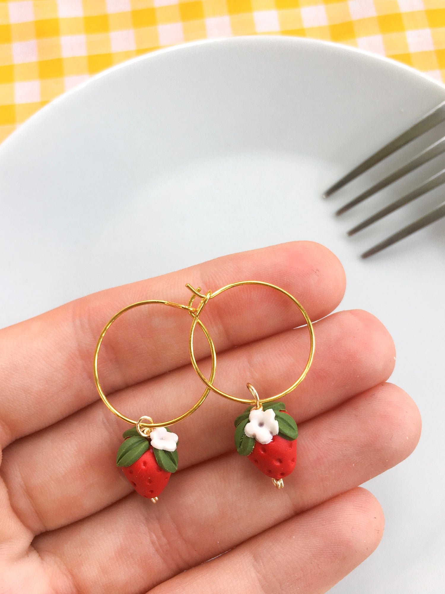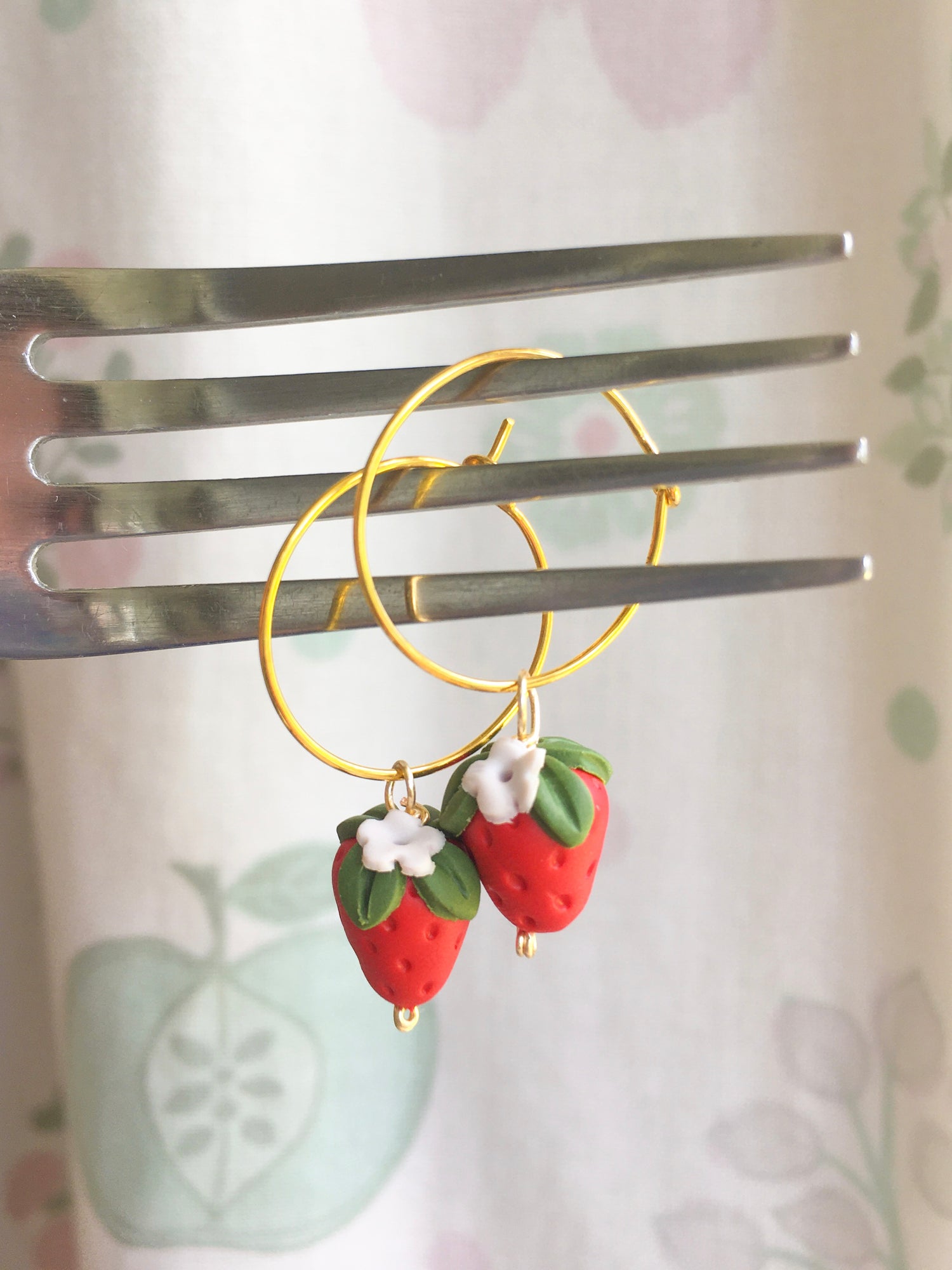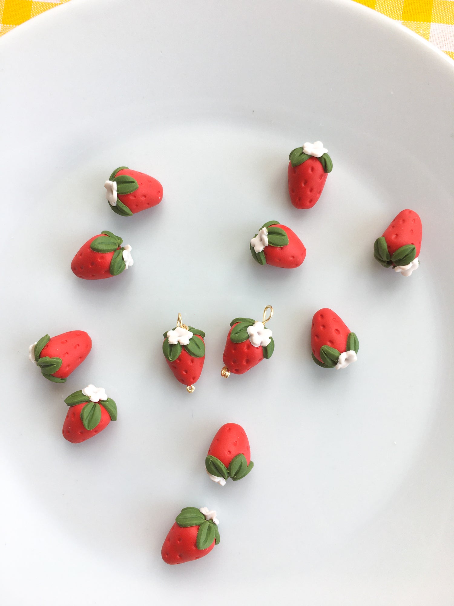 You can't go wrong with these classic strawberry charms! Complete with green leaves and a tiny white blossom. Unleash your inner Strawberry Shortcake ;)