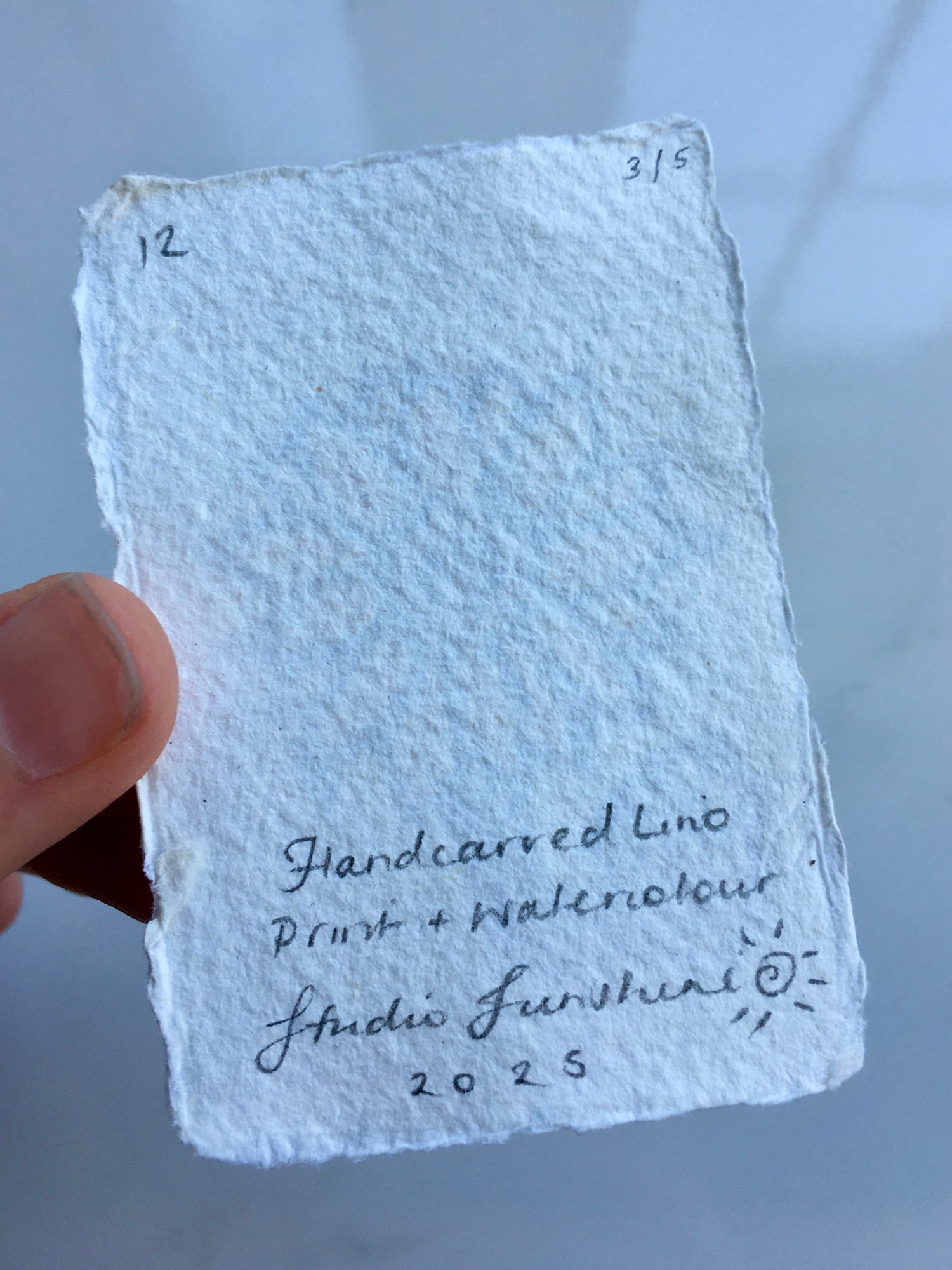 Adorable baby art print of a sunflower, block printed from handcarved lino.