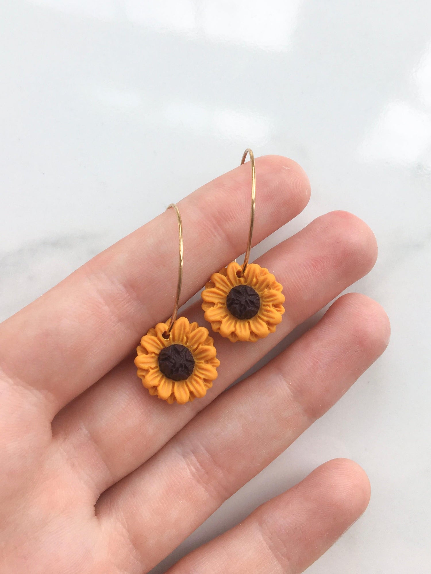 Simple but effective, you can't go wrong with these gold sunflower hoops!