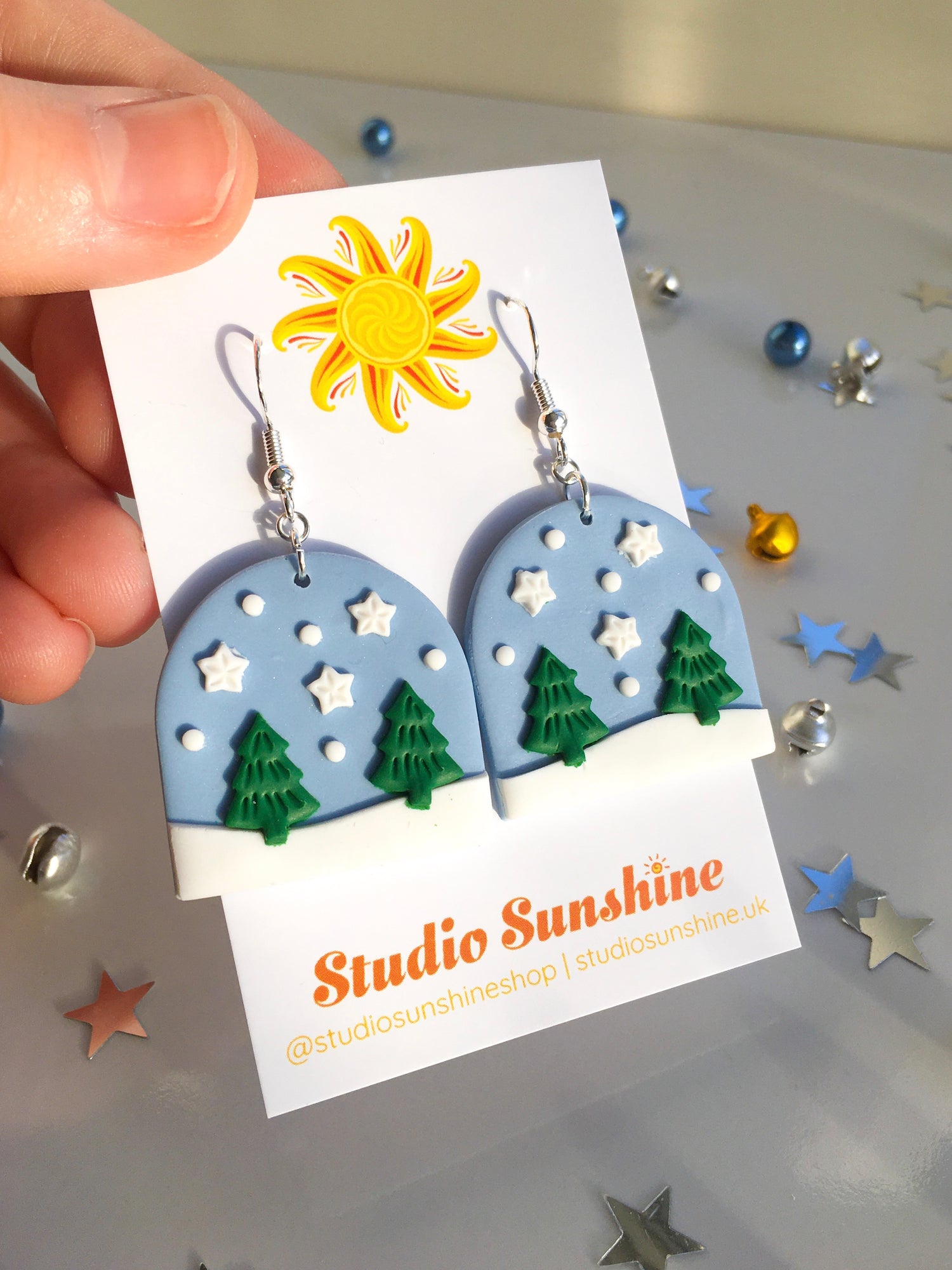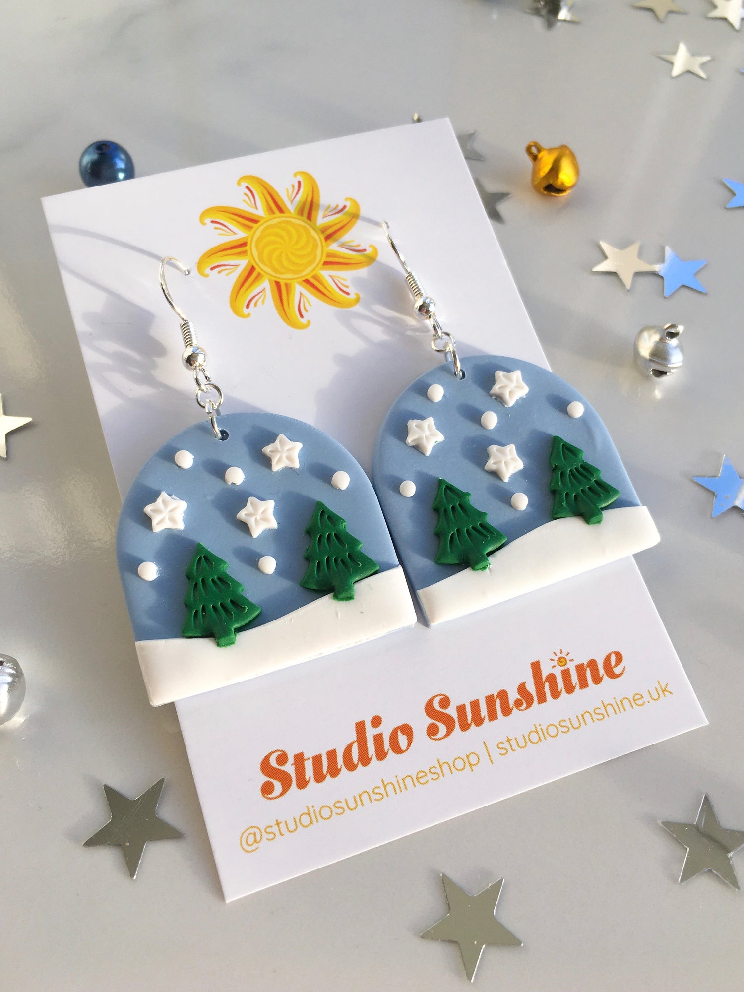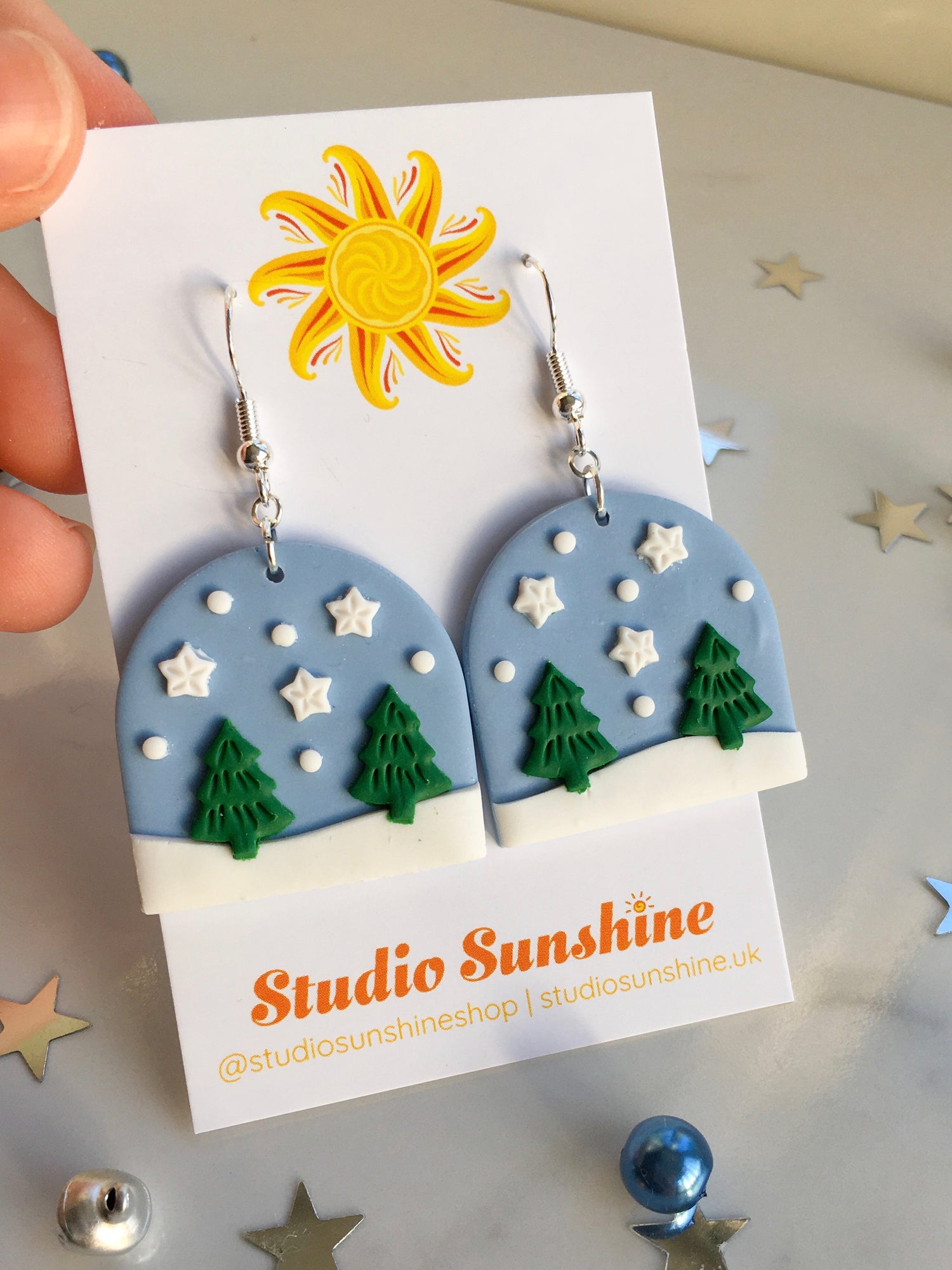Sleigh bells ring, are you listening? Step into a blissful world of soft snow and pine trees on a soft blue sky.