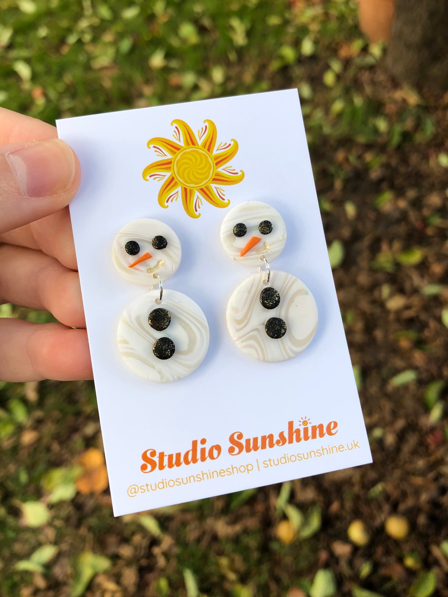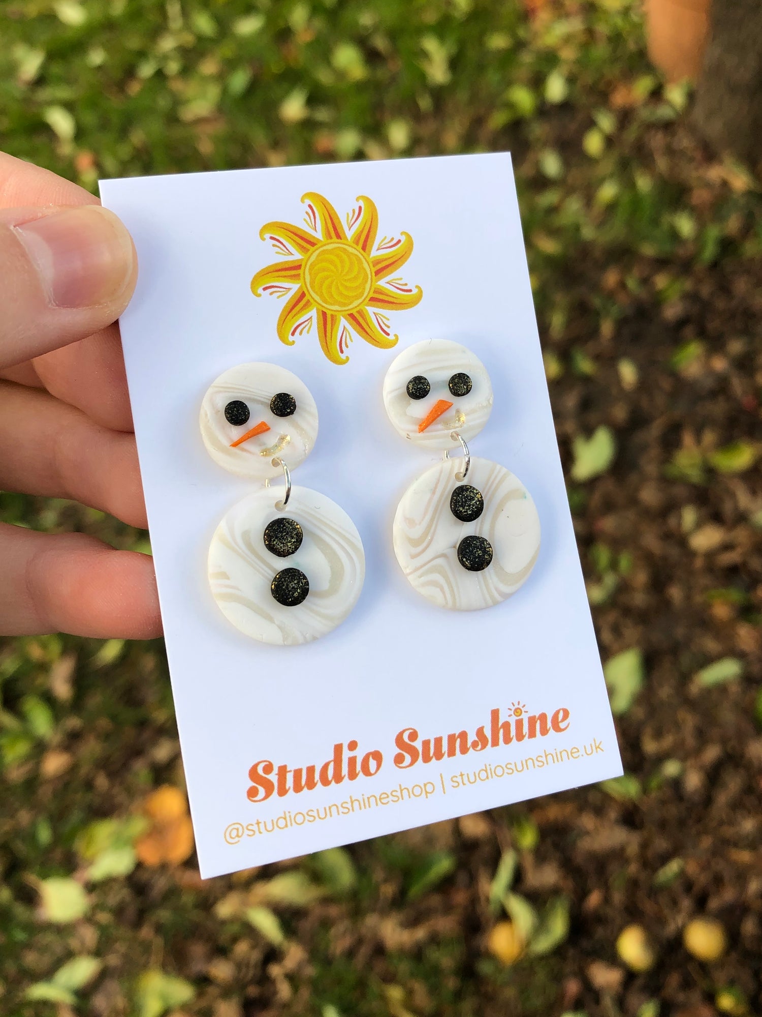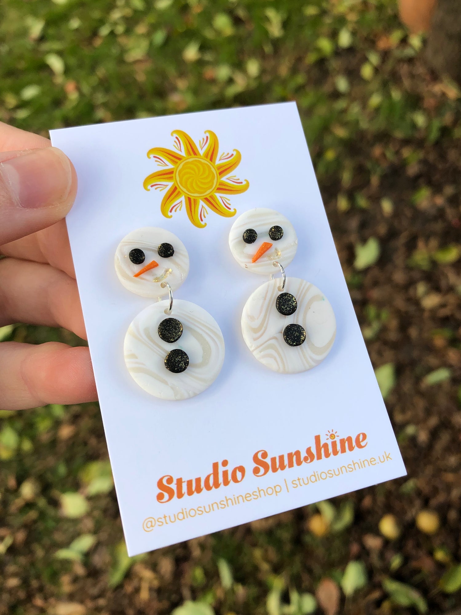 These cute stud tops are swirled with translucent and sparkling clay and complete with shimmering coal buttons and a carrot nose!
